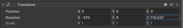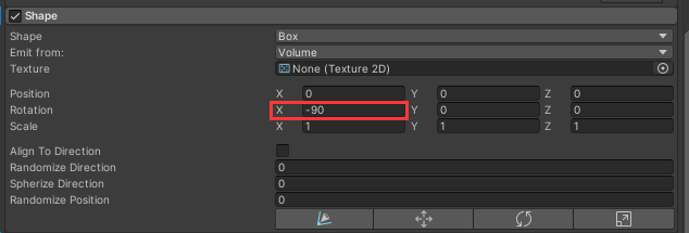 建议其他参数保持默认设置即可;但由于锥体的上底面原本的方向并非直接指向下方的原因,则需要对粒子系统执行旋转变换,请参考Fire small的transform定义: