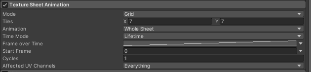 启动动画效果:在Fire small的粒子系统界面中找到并启动Texture sheet animation选项;随后按照以下步骤配置: