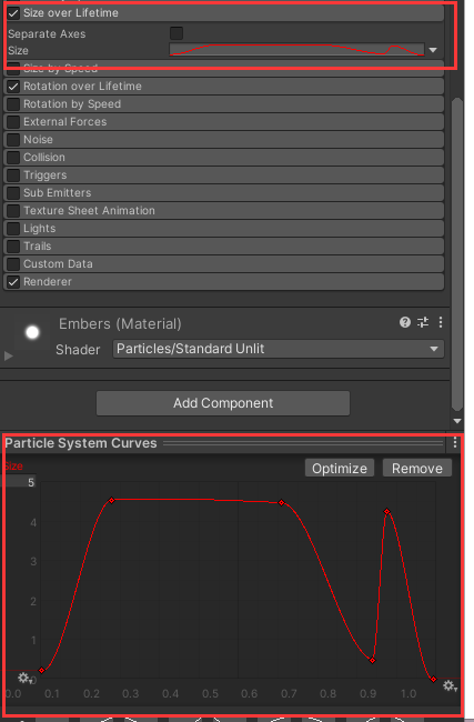 - size:类似于 trail 的粒子,在变化时逐渐变大和缩小两次完整的周期以模仿灰烬的闪烁效果;