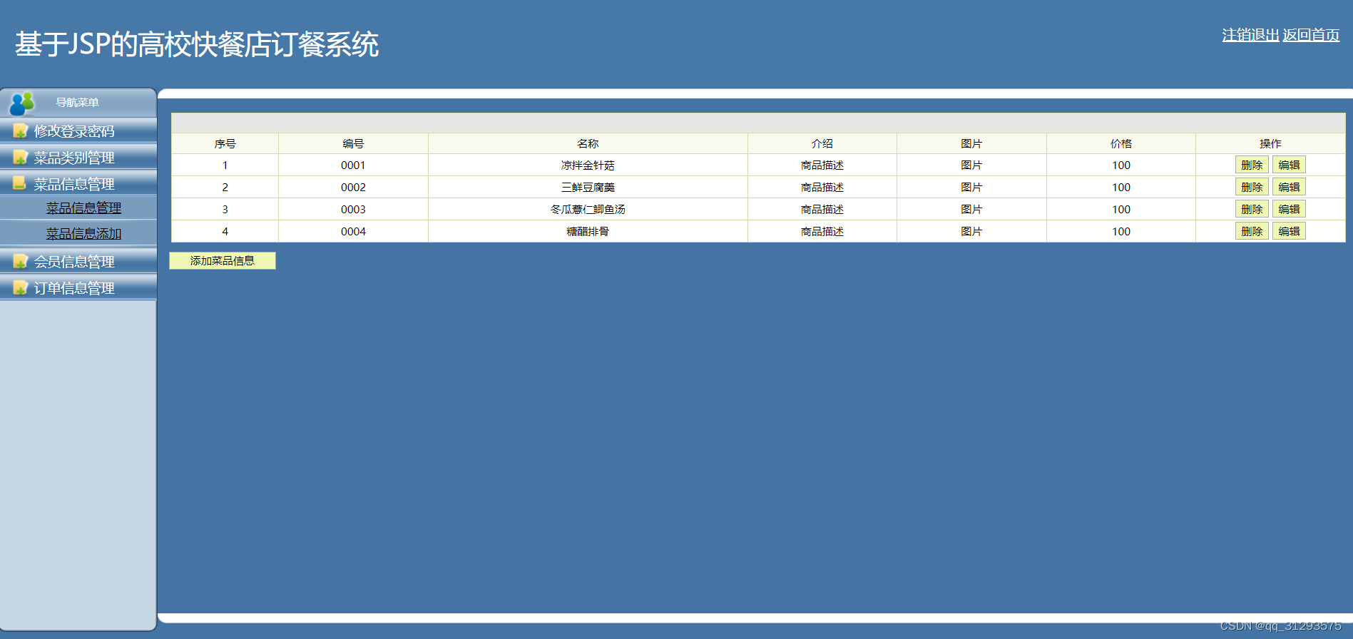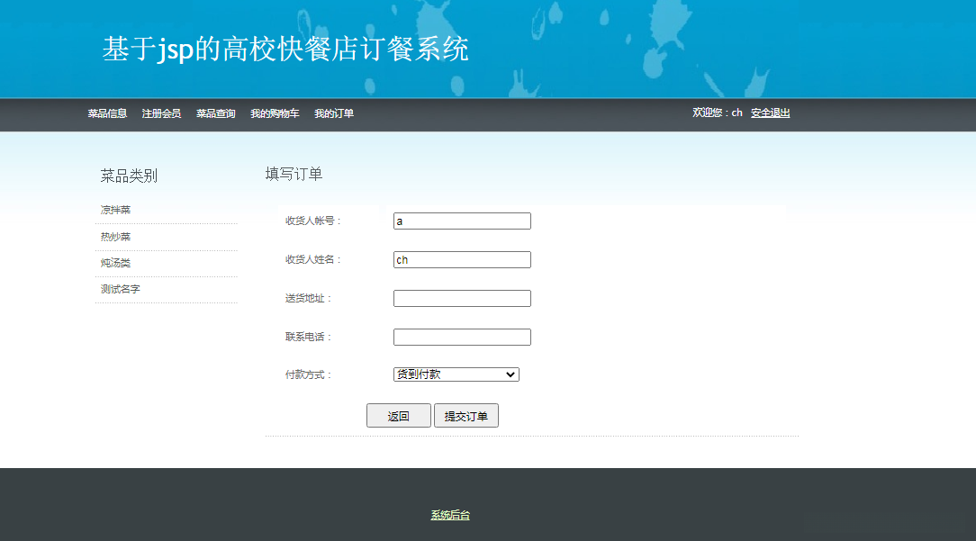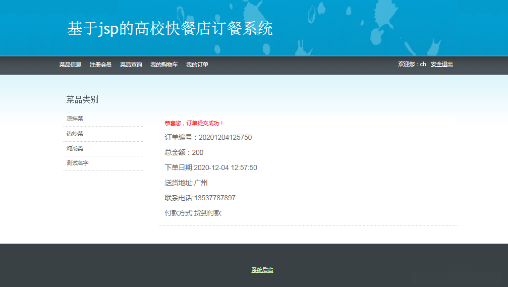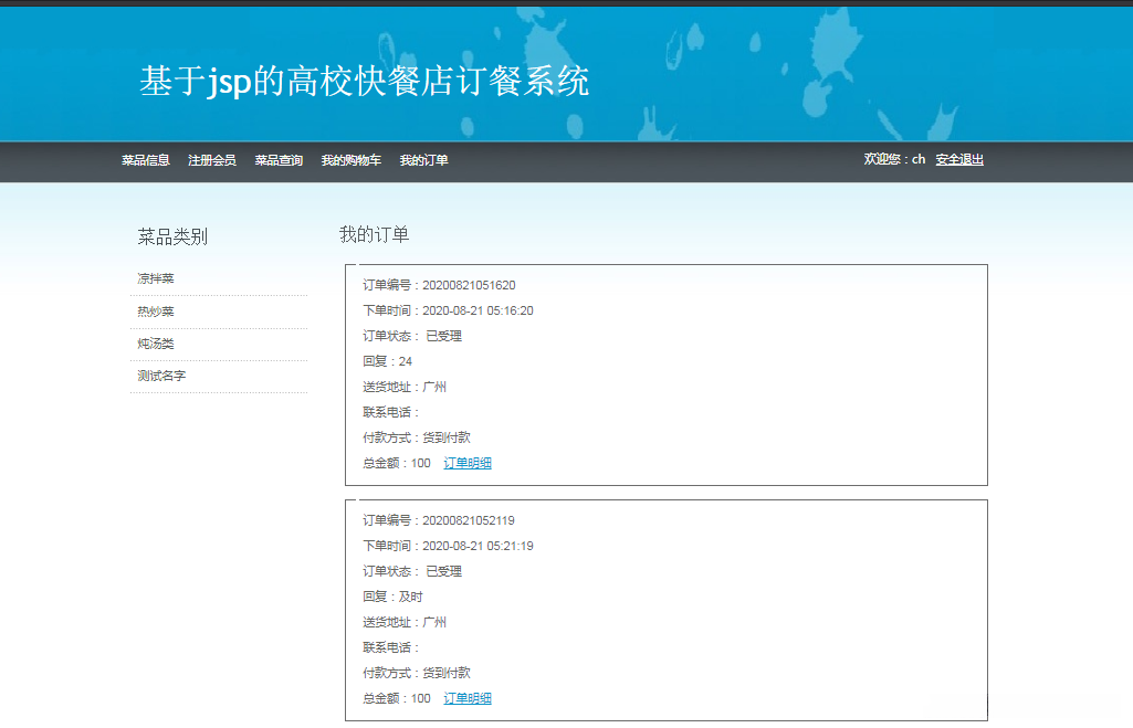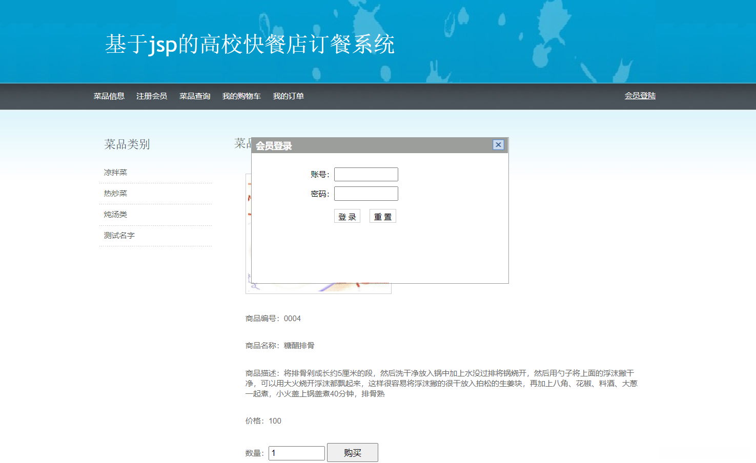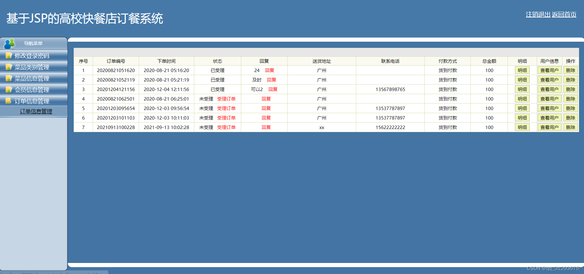 基于JSP的网上订餐管理系统餐厅餐饮系统