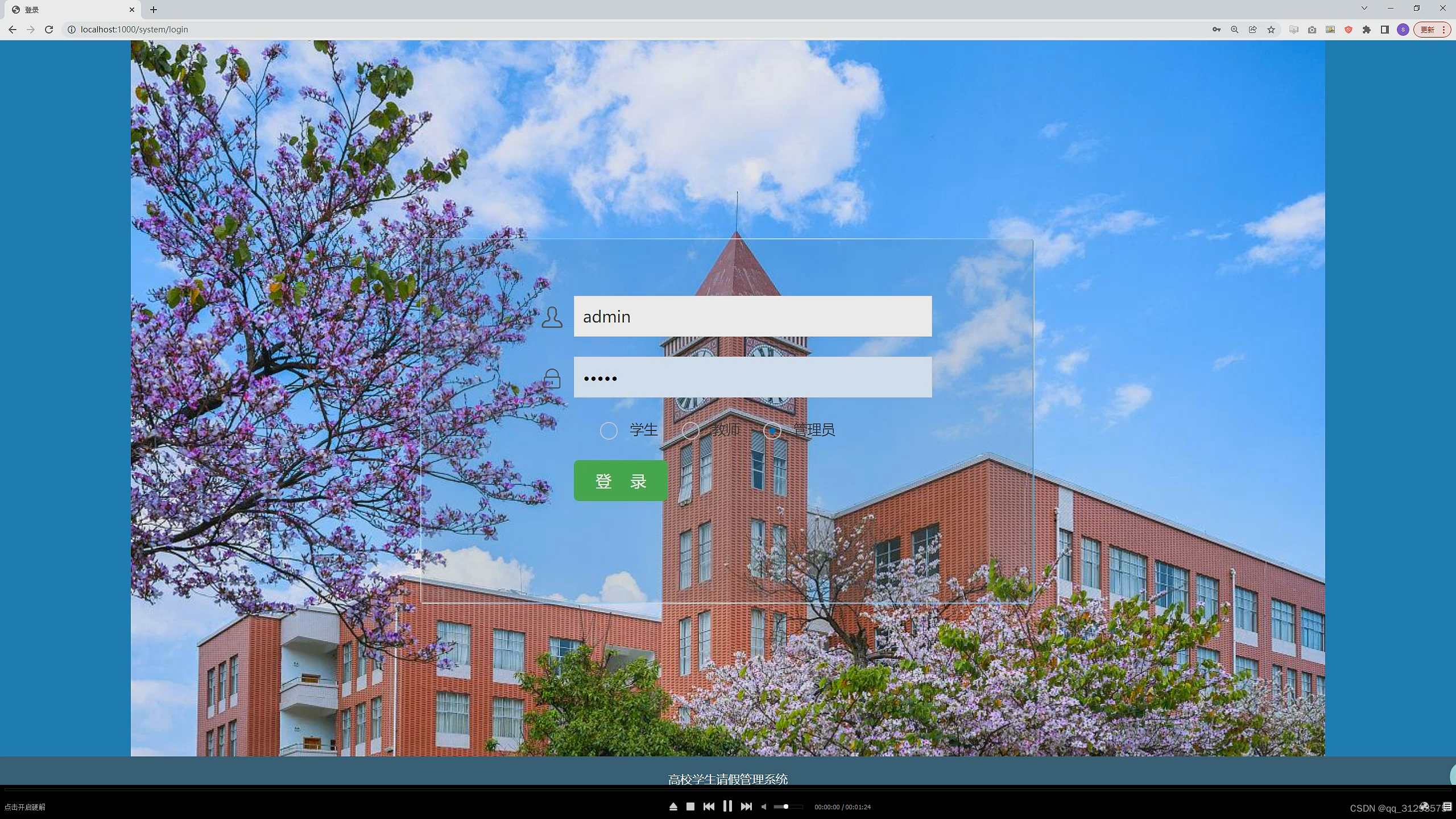4. 运行项目,在浏览器中输入http://localhost:8080/ 登录