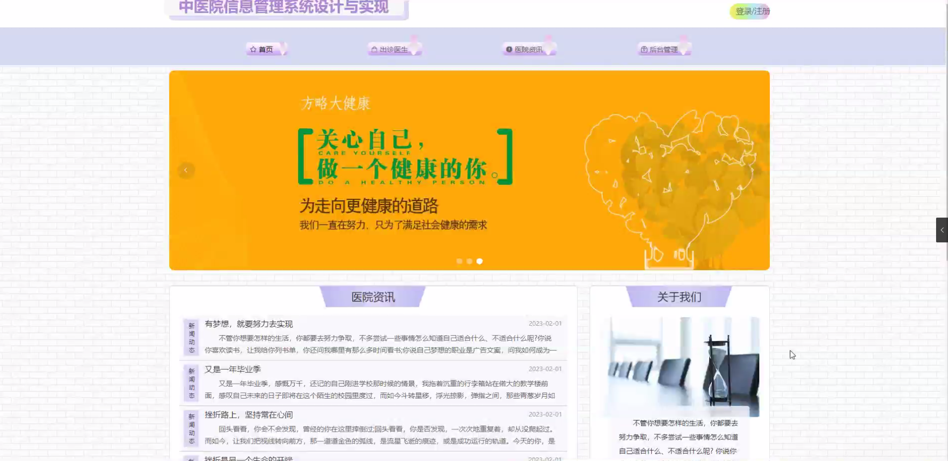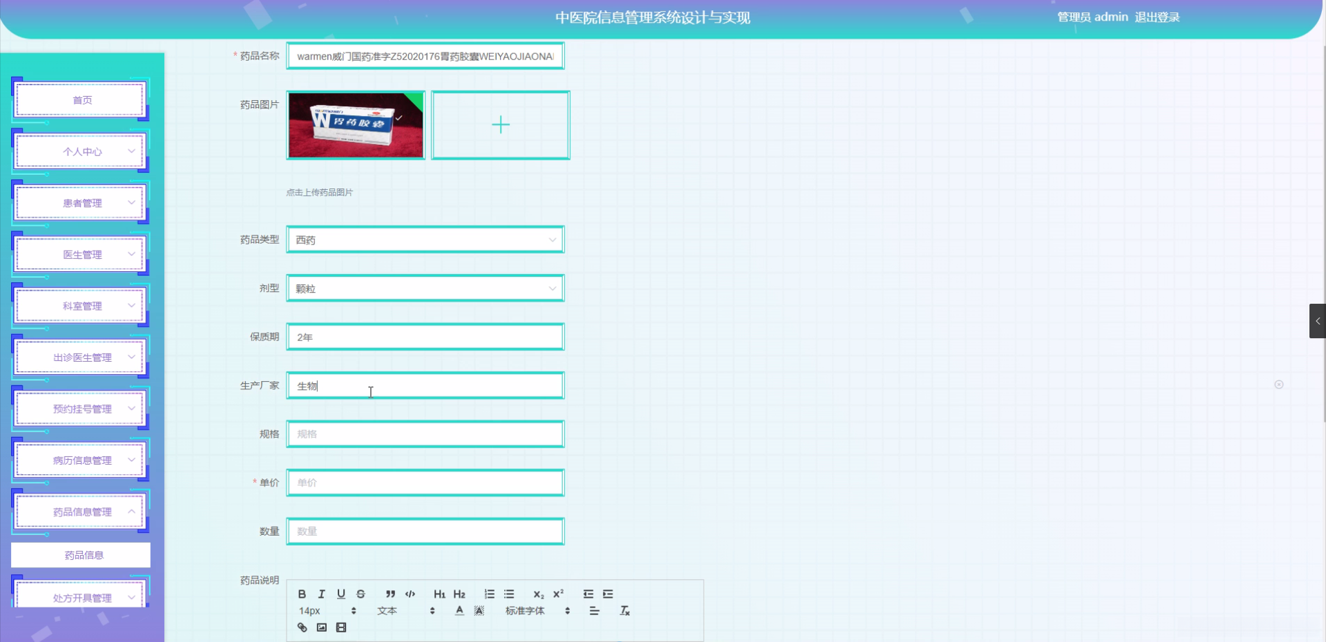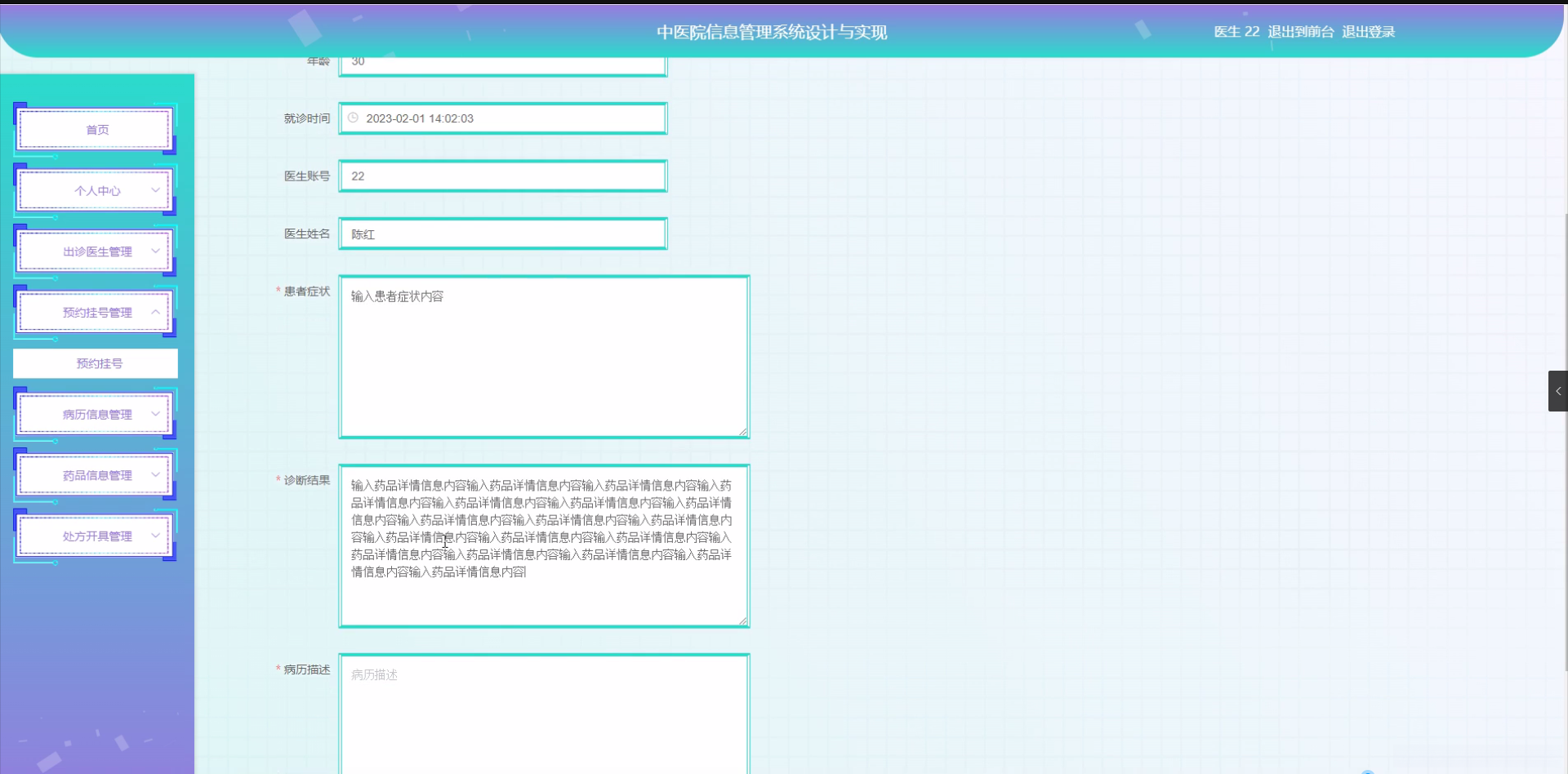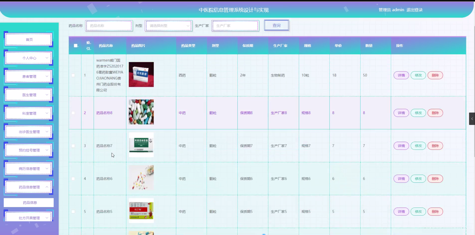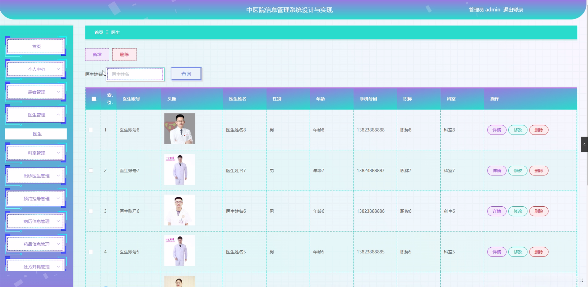 研究目的: 本研究的目的在于设计并实现一个功能全面、操作简便、安全可靠的中医院信息管理系统。主要目的是通过技术手段解决当前中医院信息管理中存在的信息不集中、资源利用不高效、服务质量难以保证等问题,为中医院提供一个集患者管理、医生管理、科室管理于一体的综合性信息管理平台。