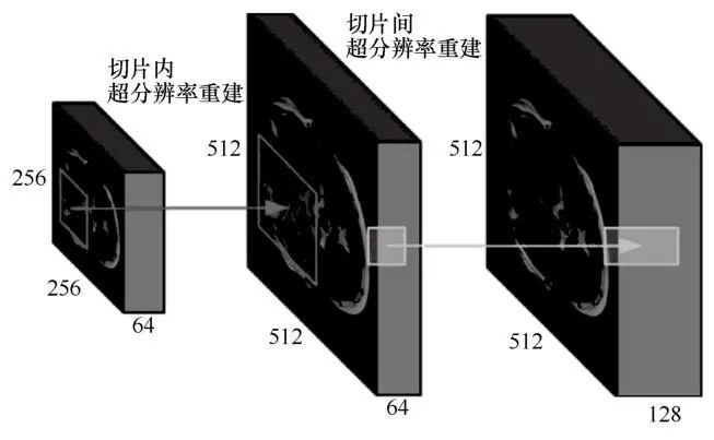 通过高分辨率的医学影像能够获得更为丰富的临床诊断信息;受限于现有医疗成像设备的技术局限性,在临床应用层面而言, 高分辨影像的实际获取仍然存在较大的挑战性。因此, 如何借助深度学习技术从单幅或多幅低分辨医学影像中恢复出相应的高分辨影像, 已然成为当前研究的重点方向之一;基于这一基础之上, 相关研究逐步展开并取得了显著进展;然而, 由于医学影像与自然图像存在本质区别, 其超分辨重建不仅需要在切片平面上实施, 还必须跨越切片之间的空间关联(例如图2所示)。