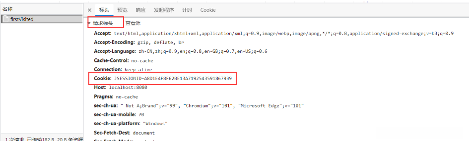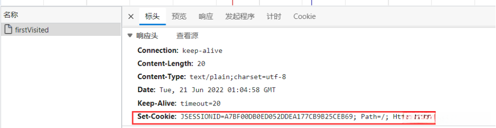 /firstVisited被赋值为初始登录事件;该事件会生成Cookie对象,并新增一个键值对first_visit与当前日期相连。