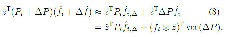的双线性,(7)类似于一个矩阵分解问题。对此类问题流行的优化策略例如交替最小二乘法不太可行,由于参数的size,以及我们问题中的在线(学习)特性。我们使用高斯牛顿法以及使用共轭梯度法来优化二次子问题。高斯牛顿法通过使用一阶泰勒级数展开线性化(7)式的残差得到。这相当于在当前估计的基础上