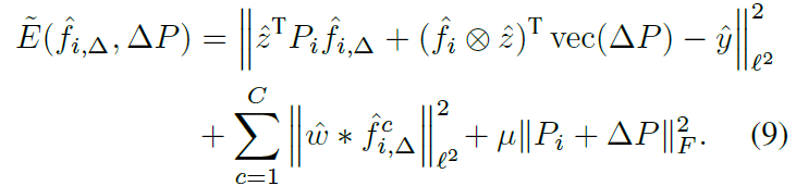 通过最小化(6)式的分类误差(3)式,以不同的方式,同时学习到滤波器f和矩阵P。