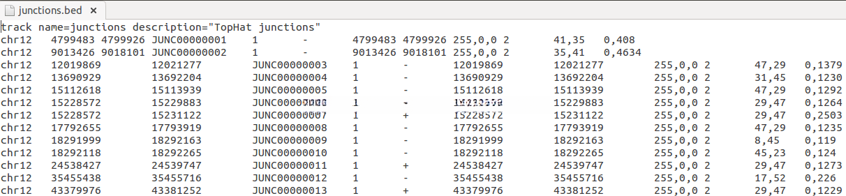 blockStarts- 用逗号分割的列表, 所有外显子的起始位置,数目也与blockCount数目对应.