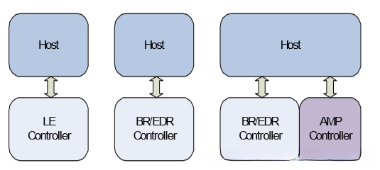 根据物理层可以分为两个大类BR(basic rate)基础速率和LE(low energy)低功耗,其中BR类又可以延申出Enhanced Data Rate (EDR)增强行数据类,EDR还支持AMP(Alternate Media Access Control and Physical )控制器