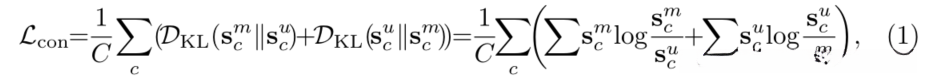 这两条路径均采用相同的UNet架构,并分别进行独立训练;随后我们基于两路径的输出分布提取语义信息,并构建了一致性损失函数项;该损失函数旨在最小化两者之间的KL散度;具体而言损失定义如下所示