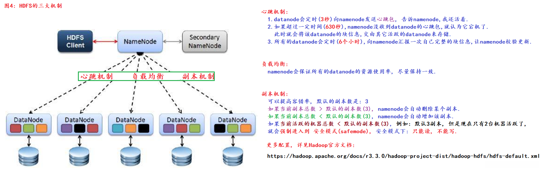 如果 当前活跃的机器总数 < 默认的副本数,就会强制进入安全模式 (safemode),安全模式下:只能读不能写.