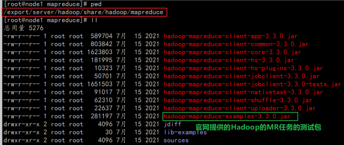 hadoop-mapreduce-examples-3.3.0.jar Hadoop 提供的 MR 任务的测试包