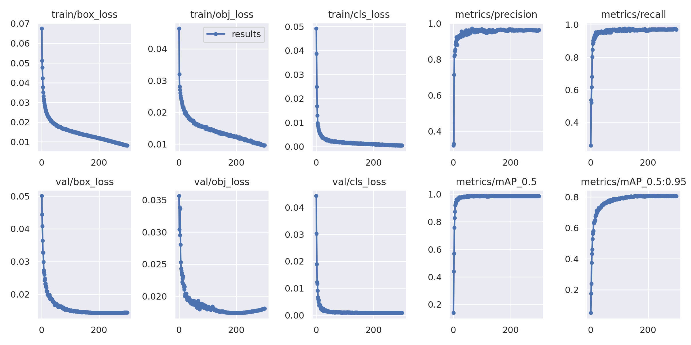 本项目采用yolov5算法进行海上船舶目标检测模型的训练,在两块NVIDIA Tesla P100显卡上进行了连续300个epocs的训练工作。通过对比训练集与验证集的损失值变化趋势以及各项评估指标(包括损失值下降、准确率提升、召回率优化和mAP性能增强)可以看出模型的学习效果不断优化。