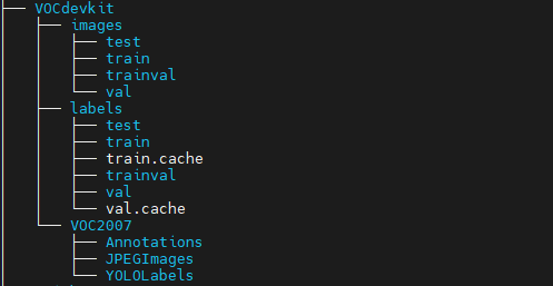 请在VOCdevkit/VOC2007目录下配置好以下内容:将7,000张图像归类至VOCdevkit/VOC2007/JPEGImages目录中的'dataset'子目录内;将对应的7,000份XML标注文件归类至VOCdevkit/VOC2007/Annotations目录下的'dataset'子目录内。通过预先编写的训练验证数据划分脚本生成训练集5,6个批次(5,6,8)各56个样本、验证集14个批次(14-16)各14个样本的数据集划分结果文件。其中images和labels文件夹系运行该训练数据分割脚本自动创建的。获取该划分数据集的具体脚本代码prepare_train_val.py: