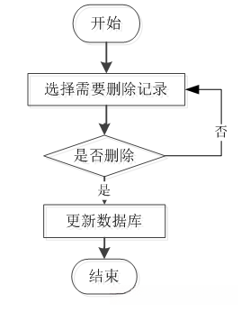 用户选择要删除的信息并单击Delete按钮。系统提示是否删除信息。如果用户想要删除信息,系统将删除信息。系统数据库删除信息。删除信息流程图如图3-5所示。