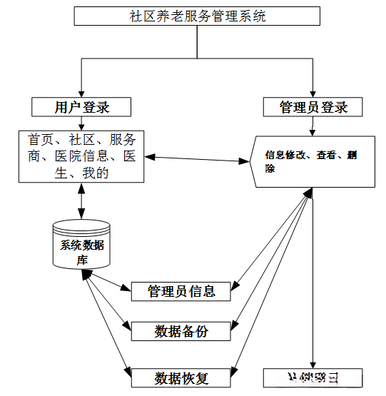 这些功能可以充分满足社区养老服务管理系统的需求。此系统功能较为全面如下图系统功能结构如图4-3所示。
