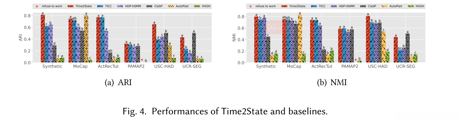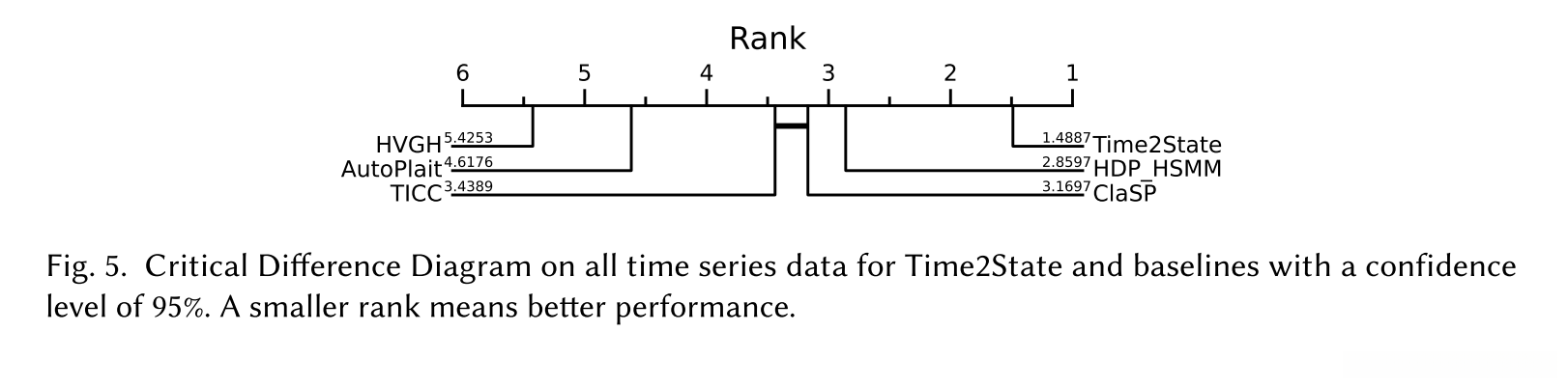 当然也看出来,深度学习的模型确实比传统的机器学习模型在识别长时间序列状态上的效果好,比如TICC方法效果明显,但是文中没有提到训练模型时间和可解释性。传统机器学习方法可以从语义角度分析,但是本文的深度学习模型很难从时间序列的语义上面找到相关的分段。