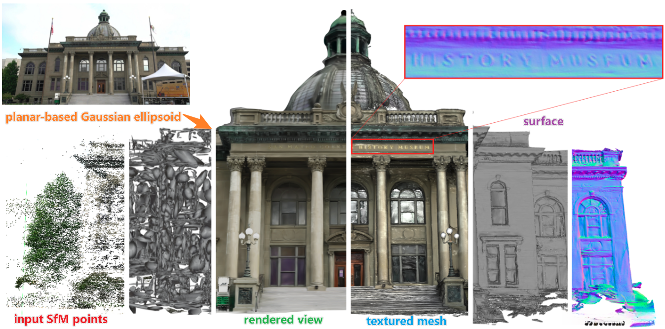 The courthouse reconstructed by our method demonstrates that PGSR can recover geometric details, such as textual details on the building.