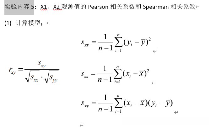 5)X1、X2观测值的Pearson相关系数和Spearman相关系数。