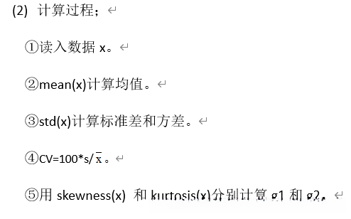 1) 实验内容1:均值、方差、标准差,变异系数,偏度,峰度