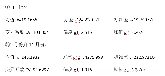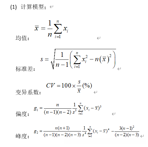1)均值、方差、标准差,变异系数,偏度,峰度;
