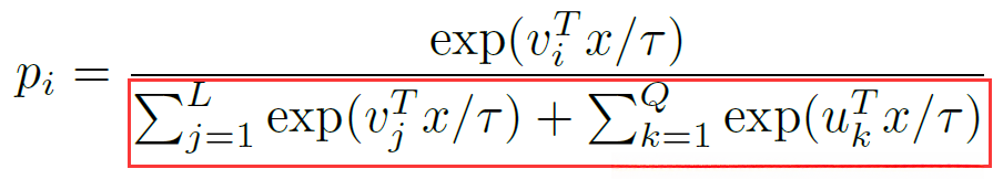 同样,在 circular queue 中,x被视为第i类 unlabeled identity 的概率为: