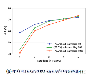 通过二次采样处理后的mAP曲线如下图。其中采用了不同规模的二次采样方法。评估指标为mAP: