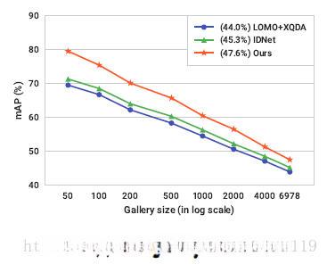 最后就是探究 gallery size 对mAP的影响了,也是本文的最后一个实验。