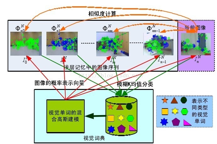 4.1基于人工视觉词典的闭合检测算法: