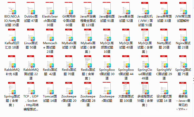 这套完整的面试资料集齐了1592道大厂 Java 真题与4套上万字的标准解析!其涵盖范围极为广泛:集合框架的相关知识讲解与实战演练;JVM虚拟机管理的核心技巧;深入剖析多线程与并发编程的实际应用;全面梳理设计模式在系统设计中的典型应用场景分析;Spring全家桶实战案例详尽解答;MyBatis订单处理系统的开发要点精讲;Zookeeper企业级一致性锁机制深入解读;Dubbo分布式服务通信协议实现技巧;Elasticsearch高效信息检索方案设计;Memcached分布式缓存机制优化方法介绍;MongoDB非关系型数据库特性及应用场景讲解;Redis缓存系统构建与性能调优技巧分享;MySQL数据库设计与事务管理实践指导;RabbitMQ消息队列构建与消息处理方案分析;Kafka分布式流处理系统原理及应用场景解析;Linux服务器系统架构核心知识点总结;Netty HTTP服务器搭建与性能优化技巧分享以及Tomcat常用配置参数详细解读!