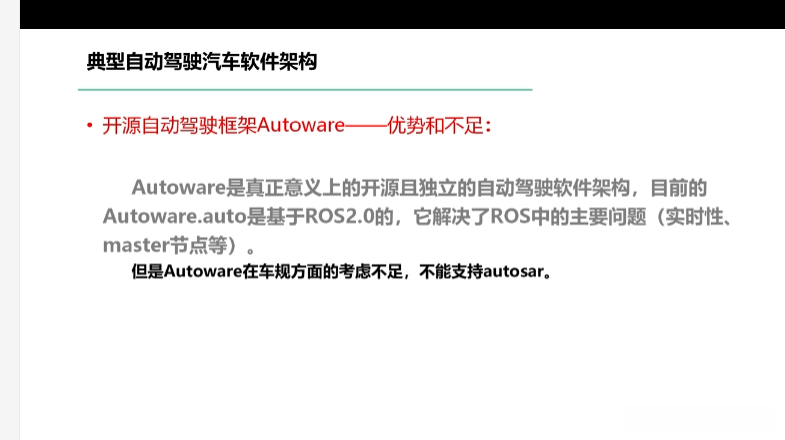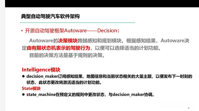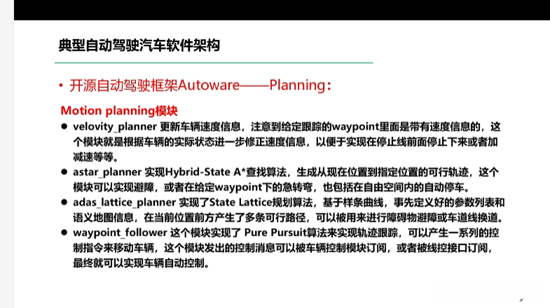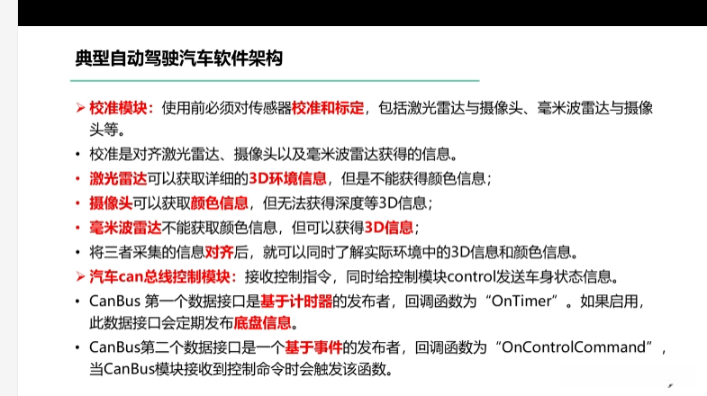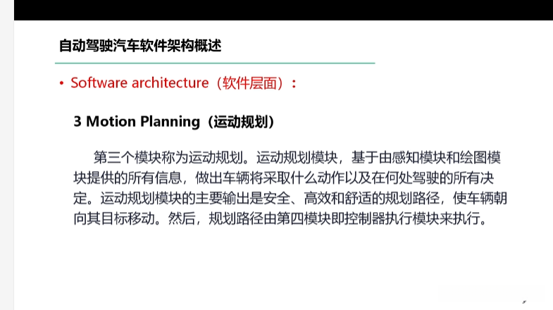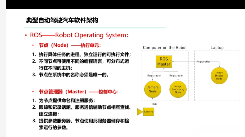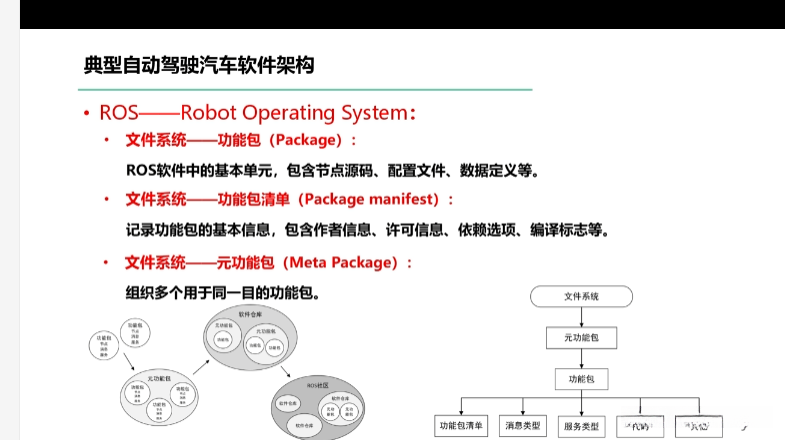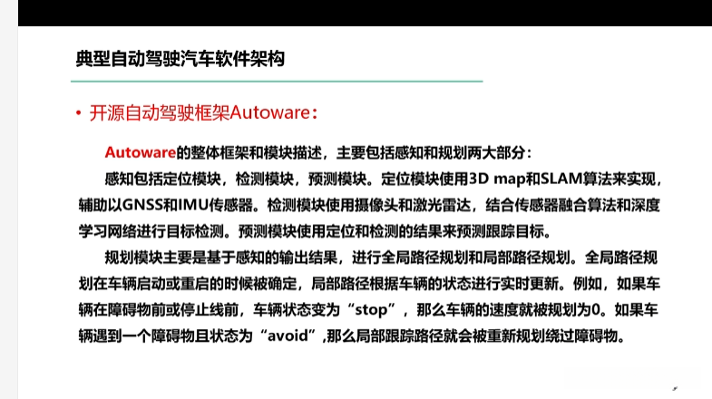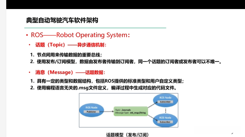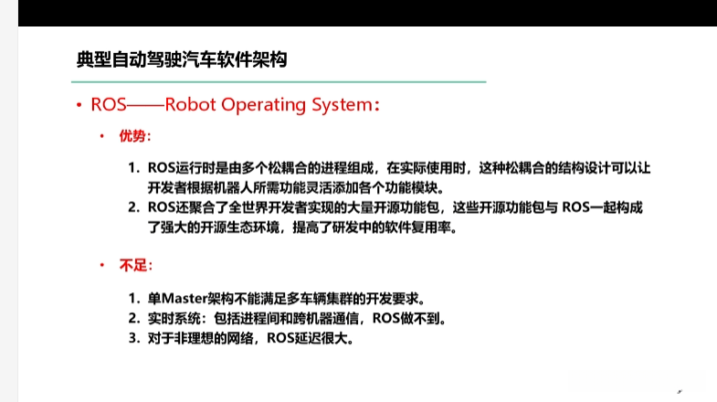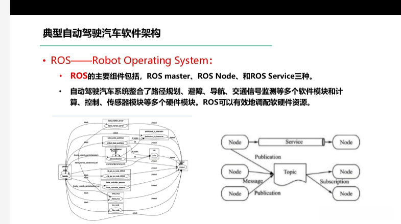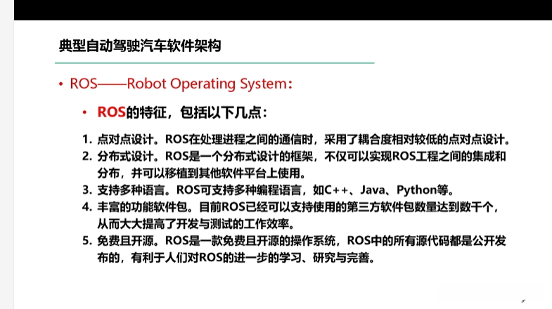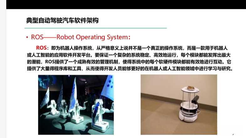 第二章自动驾驶汽车平台技术基础第三节自动驾驶汽车软件平台 3.1自动驾驶汽车软件架构概述 3.2典型自动驾驶汽车软件架构ROS 3.3典型自动驾驶汽车软件架构Autoware 3.4典型自动驾驶汽车软...