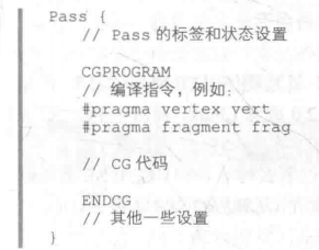 * 通常,CG的代码片段是位于Pass语义块内部的,如下图所示: