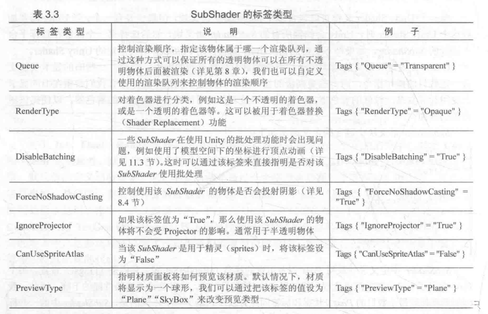 * subshader的标签(Tag)