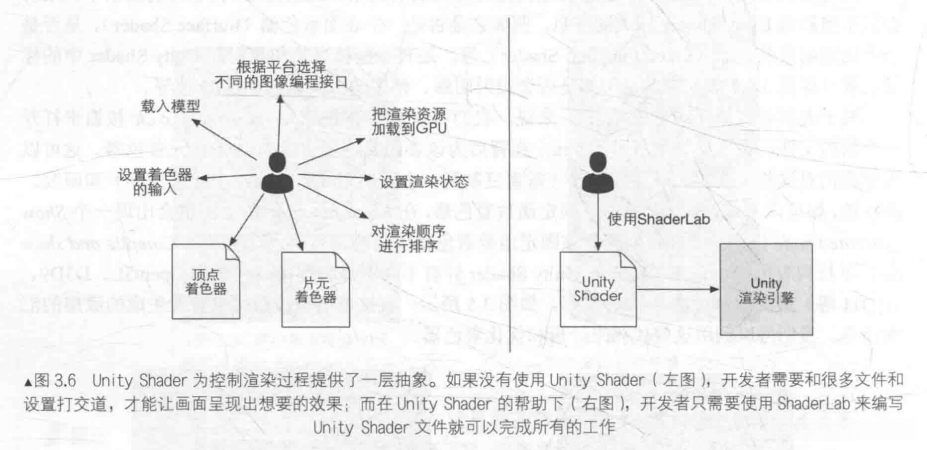 * 可以说,Unity Shader提供了一种让开发者同时控制渲染流水线中多个阶段的一种方式,不仅仅是提供Shader代码。