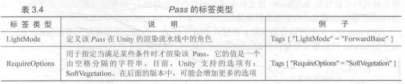 * Pass同样可以设置标签,但它的标签不同于SubShader的标签。这些标签也是用于告诉渲染引擎我们希望怎么样来渲染该物体。
