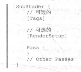 * subshader语义块中包含的定义通常如下: