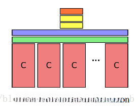 (紫色是max-pooling层,C是CNN特征提取输出层,黄色是全连接层,橘色是softmax层,绿色是时域卷积层)