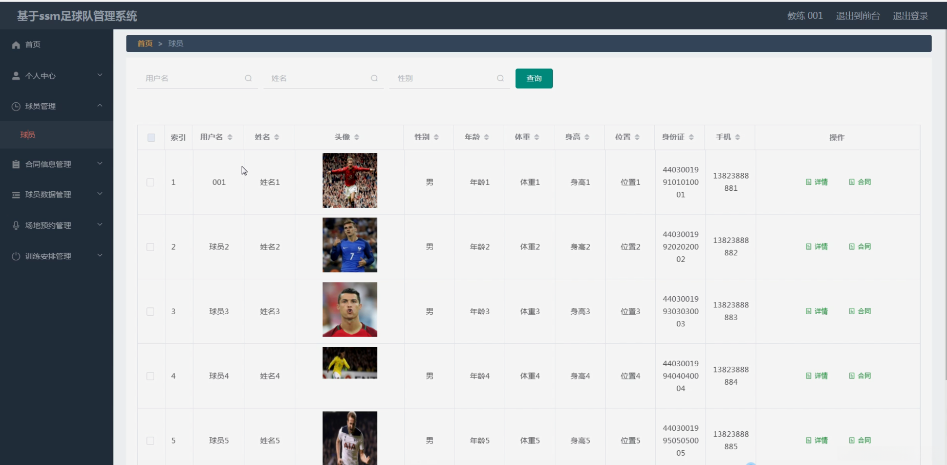 - 系统功能设计:包括球员管理、教练管理、球队赛程管理、合同信息管理、球队信息管理、球员数据分析、场地信息管理、场地预约管理、训练安排管理等系统功能的设计和开发;