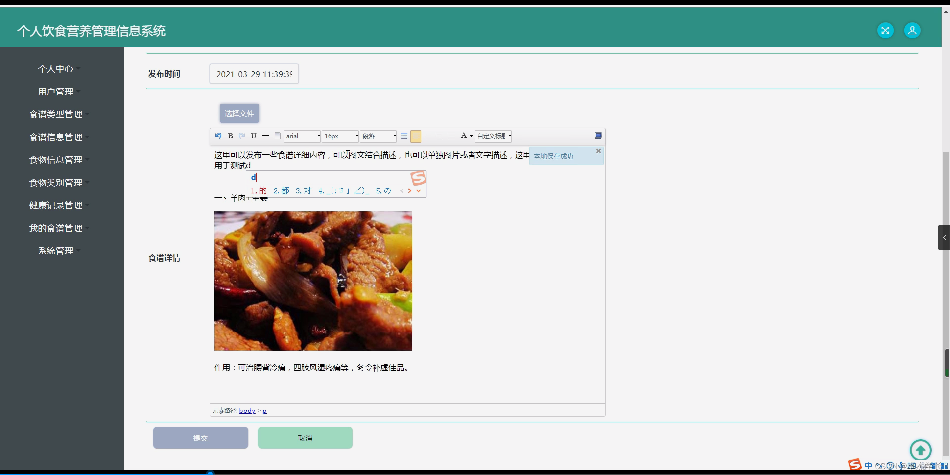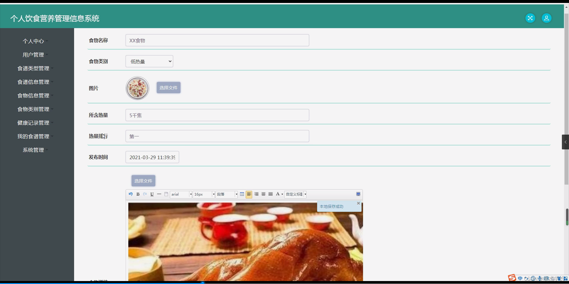 [附源码]JAVA毕业设计个人饮食营养管理信息系统(系统+LW)