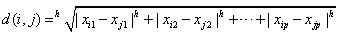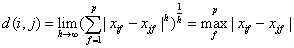 更一般的我们称之为闵可夫斯基距离,其计算方式为: