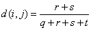 对于非对称的二元属性,对应的成为非对称的二元相异性,计算方式为: