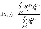 假设数据集包含p个混合类型的属性,对象i和j之间的向异性d(i,j)定义为: