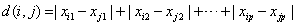 另一个独立方法称为曼哈顿距离,即对应属性的差的绝对值之和: