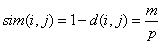 其中,m是匹配的数目(即状态相同的属性数)。或者相似性可用如下计算: