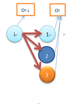 该图为一次递推过程,输出观察值为O1O2**,图中O2对应的状态1的概率是通过O1对应的3个状态通过递推公式求得,该结果为:**