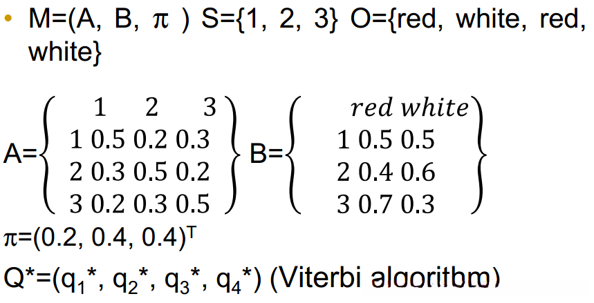 问题:给定观察值序列O=o1**,…,oT以及一个模型λ=(π,A,B )时,如何确定最佳状态序列Q*****=q1*****,q2*****,…,qT***