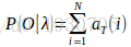 问题:给定观察值序列O=o1**,…,oT以及一个模型λ=(π,A,B )时产生出O的概率P(O|λ)?**