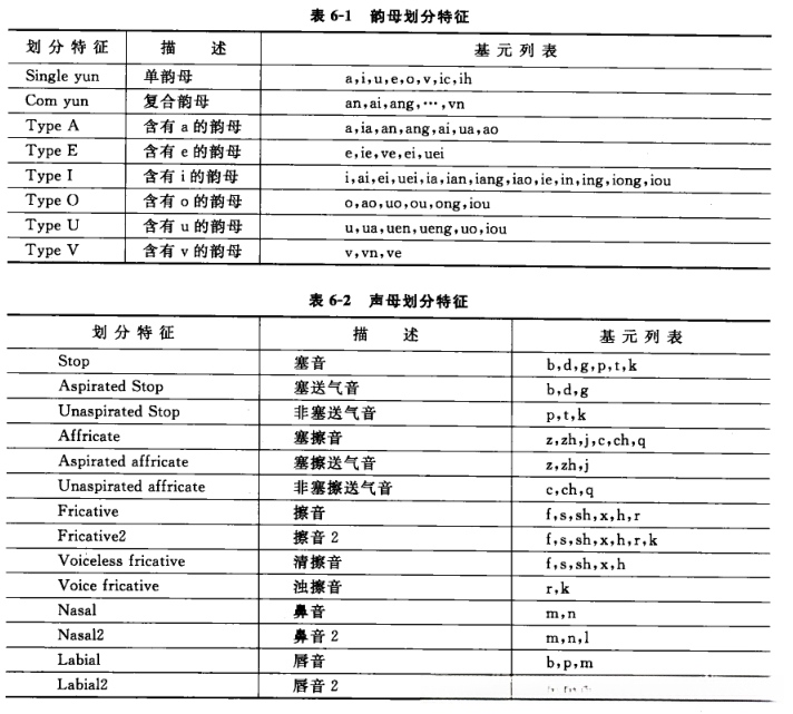 汉语选择声韵母:汉语是单音节,汉语的音节是声韵结构,而且与声母相连的只有韵母或者静音,与韵母相连的也只有声母或者静音,该规则会大大减少上下文相关的声韵母基元数量。