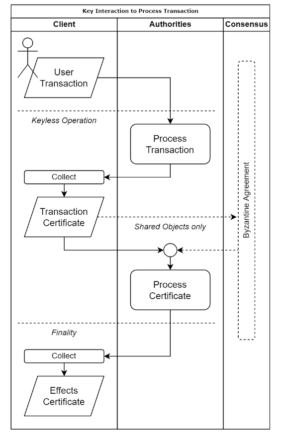 For these object-oriented transactions, Sui leverages *Fast Pay, an innovative Byzantine Consistent Broadcast-based solution. This robust algorithm ensures that all transactions are processed and validated without requiring any consensus. The system leverages *Fast Pay to deliver efficient and reliable transaction processing.