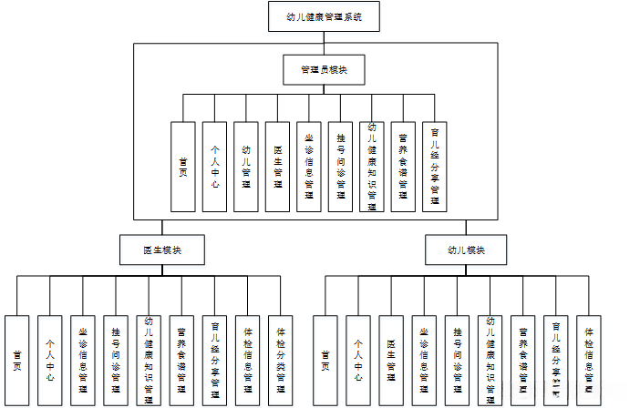系统架构图属于系统设计阶段,系统架构图只是这个阶段一个产物,系统的总体架构决定了整个系统的模式,是系统的基础。幼儿健康管理系统的整体结构设计如图4-2所示。