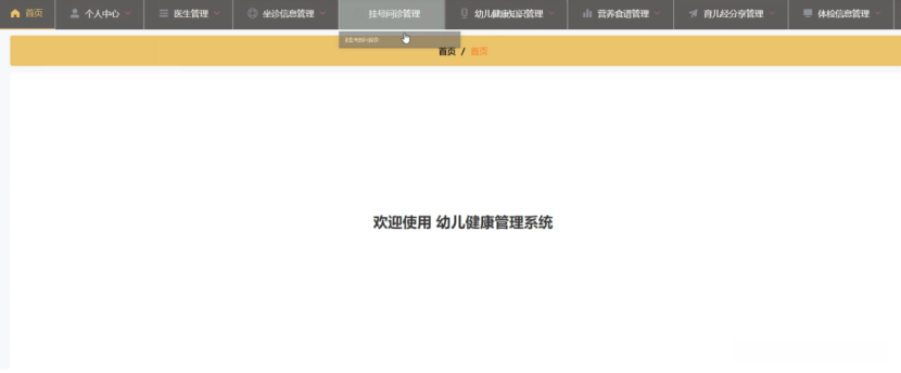 3、功能的完善性:可以管理首页、个人中心、幼儿管理、医生管理、坐诊信息管理、挂号问诊管理、幼儿健康知识管理、营养食谱管理、育儿经分享管理模块的修改和维护操作。